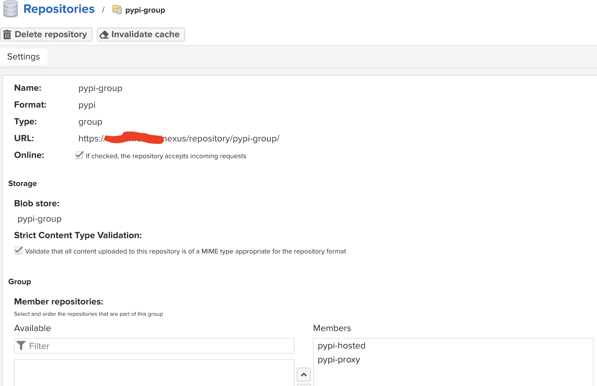 pypi-proxy 구성시에는 remote storage를 https://pypi.org 로 등록하고 pypi-group을 맨마지막에 생성할때 pypi-proxy와 pypi-hosted를 member로 지정한다.