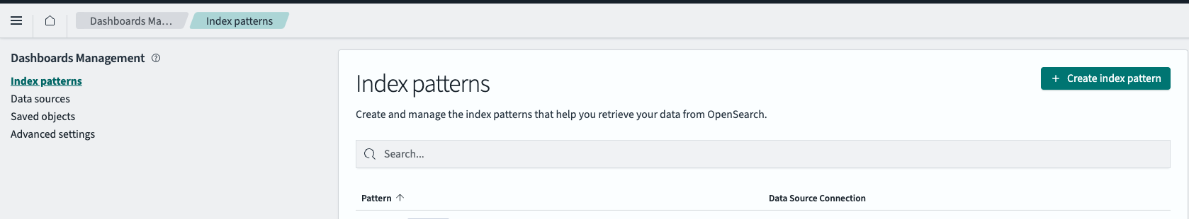 Management > Dashboards Management > index patterns로 이동한다.